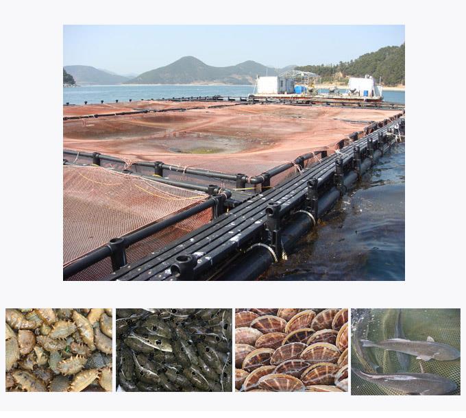 宇王集團海珍品養殖分公司以生態化、集約化海珍品養殖為主,海洋筏架養殖面積達上千畝。人工魚礁海域600余畝、網箱養殖海域400余畝(網箱400余個)、常年常溫水循環室內養殖大棚10000㎡。主要從事海參、河豚、黑魚、牙片魚、貝類等海珍品養殖,年產鮮活水產品上千噸。