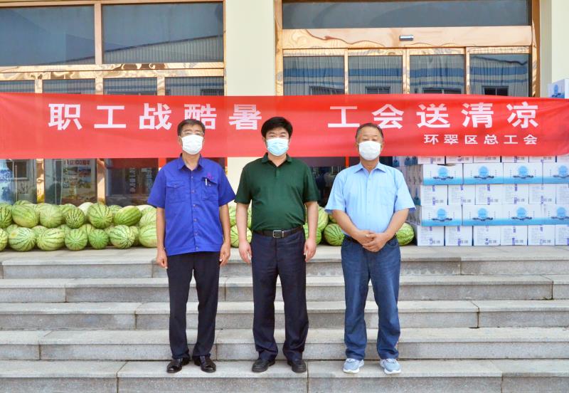 8月11日上午,環翠區總工會黨組書記、主席鄒杰來到宇王集團,為炎炎烈日下仍堅守崗位的工作人員送去防暑降溫慰問品和貼心的關懷。