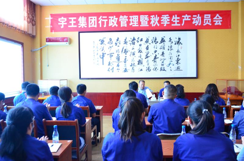 9月12日,宇王集團召開行政管理暨秋季生產動員會,黨委副書記隋樹武主持會議,黨委書記、董事長苗強出席大會并發表重要講話,全體行政人員及生產企業主要領導參加會議。
