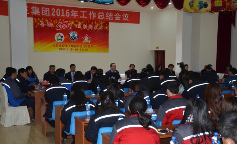 2017年1月23日,宇王集團2016年度工作總結大會在宇王海洋生物科技產業園區會議室召開。會議的主題是總結經驗、查找不足,為全面推進新年的工作打好基礎。公司領導、全體行管人員、各單位副主任以上干部及先進個人參加會議。