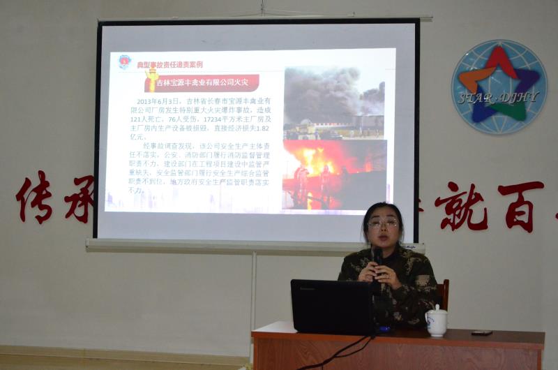 為增強職工的消防安全意識,普及消防安全知識,全面推進我公司的消防安全宣傳工作,在天干物燥的冬季到來之際,公司特邀請經區消防大隊警官來到海洋生物科技產業園對金琳水產全體職工進行消防安全知識培訓講座。