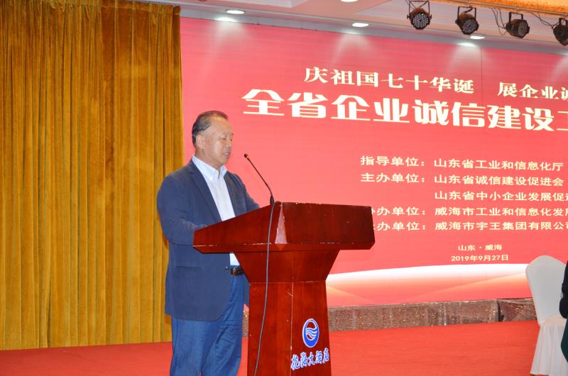 927日,山東省企業誠信建設工作會議在我市召開,全省誠信建設示范企業代表170余人參加會議。省企業誠信示范企業威海市宇王集團有限公司協辦此次會議。