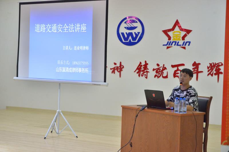 山東瀛清成律師事務所的連律師從參會人員的日常工作和生活出發,主要針對“道路安全行駛、保險與責任、事故處理與判定、酒駕與刑罰”等日常生活中的常見問題答疑解惑,通過身邊大量案例講解,概念闡述,現場互動等方式授課。整場內容豐富,寓意深刻,易于接受,令所有參訓人員感到意猶未盡,受益匪淺。